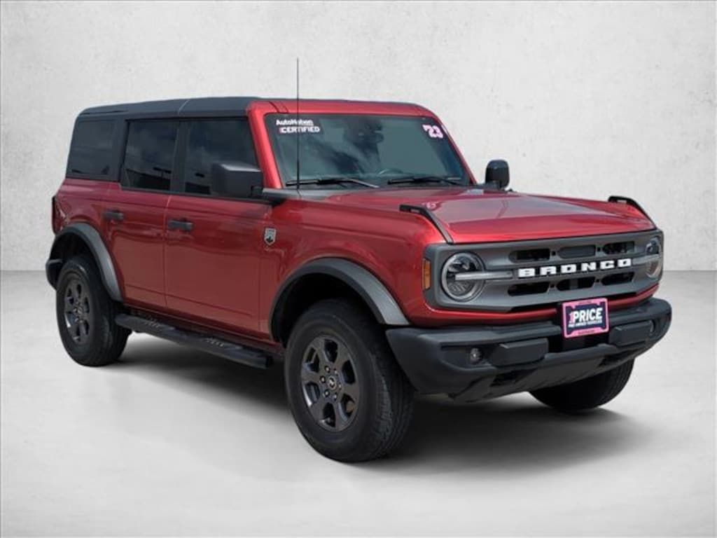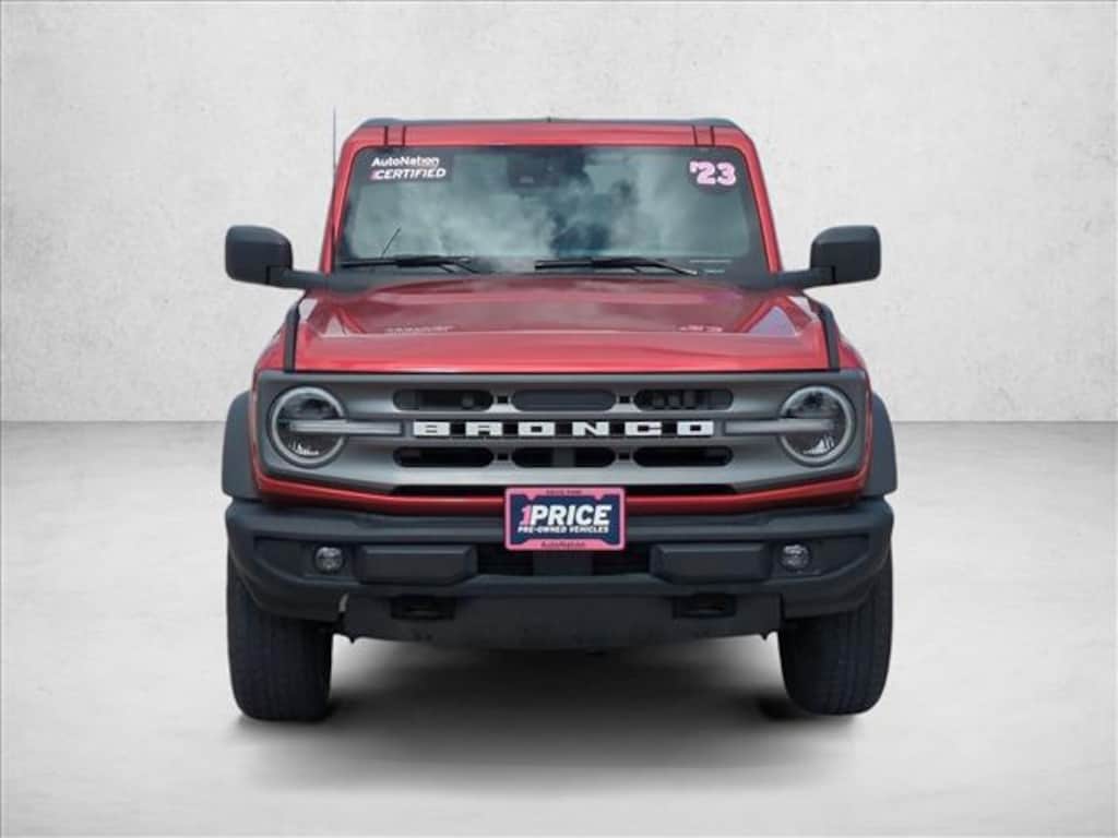 This 2023 Ford Bronco Big Bend is proudly offered by AutoNation Ford Mazda Corpus Christi This Ford includes: ENGINE: 2.7L ECOBOOST V6 V6 Cylinder Engine Gasoline Fuel Turbocharged *Note - For third party subscriptions or services, please contact the dealer for more information.* On almost any road condition, this Ford Bronco Big Bend offers solid performance, reliability, and comfort. This 4WD-equipped vehicle handles any condition on- or off-road with the sure footedness of a mountain goat. With unequaled traction and stability, you'll drive with confidence in any weather with this Hot Pepper Red Metallic Tinted Clearcoat 2023 4WD Ford Bronco Big Bend. This 2023 Ford Bronco has such low mileage it has been parked more than driven.