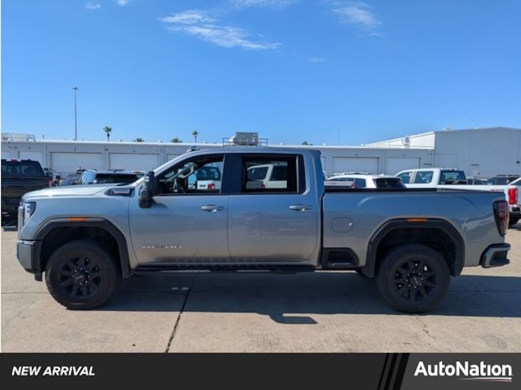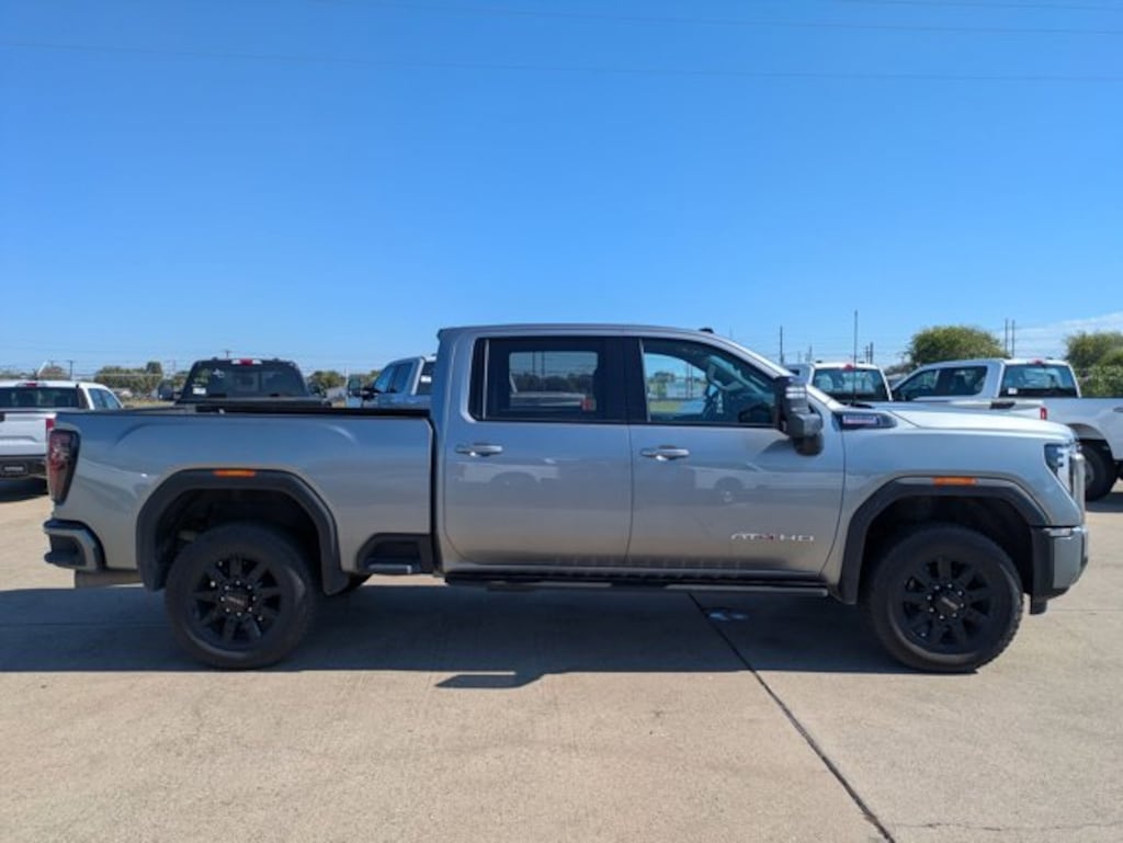 This 2025 GMC Sierra 2500HD AT4 is proudly offered by AutoNation Ford Mazda Corpus Christi This GMC includes: HIGH IDLE SWITCH STERLING METALLIC LPO, OFF-ROAD HIGH CLEARANCE STEPS Running Boards/Side Steps EMISSIONS, FEDERAL REQUIREMENTS TECHNOLOGY PACKAGE Back-Up Camera Heads-Up Display GVWR, 11,350 LBS TRANSMISSION, ALLISON 10-SPEED AUTOMATIC A/T 10-Speed A/T AT4 PREFERRED PACKAGE Sliding Rear Window Universal Garage Door Opener REAR AXLE, 3.42 RATIO ENGINE, DURAMAX 6.6L TURBO-DIESEL V8, B20-DIESEL COMPATIBLE Diesel Fuel 8 Cylinder Engine Turbocharged JET BLACK WITH KALAHARI ACCENTS, PERFORATED FRONT LEATHER SEAT TRIM Leather Seats *Note - For third party subscriptions or services, please contact the dealer for more information.* Outstanding craftsmanship and artisanal refinements abound with this GMC Sierra 2500HD AT4. Where do you want to go today? With 4WD, you can choose to drive virtually anywhere and on terrain 2WD vehicles can't handle. Added comfort with contemporary style is the leather interior to heighten the quality and craftsmanship for the GMC Sierra 2500HD AT4.