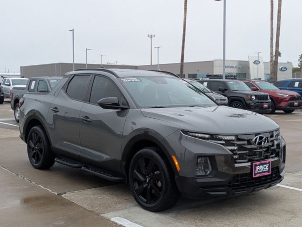 AutoNation Ford Mazda Corpus Christi is excited to offer this 2024 Hyundai Santa Cruz NIGHT. This Hyundai includes: FIRST AID KIT (PIO) BED MAT (PIO) BLACK, H-TEX LEATHERETTE SEATING SURFACES Premium Synthetic Seats BED FENCE (PIO) CARPETED FLOOR MATS (PIO) Floor Mats ENVELOPE CARGO NET (PIO) HAMPTON GRAY *Note - For third party subscriptions or services, please contact the dealer for more information.* As a Certified Pre-Owned vehicle, this Hyundai Santa Cruz NIGHT offers you the peace of mind because you know it has been rigorously inspected to meet exacting standards. Enjoy the grip and control of AWD performance in this nicely equipped Hyundai Santa Cruz NIGHT. The 2024 Hyundai exterior is finished in a breathtaking Hampton Gray, while being complemented by such a gorgeous Black interior. This color combination is stunning and absolutely beautiful!